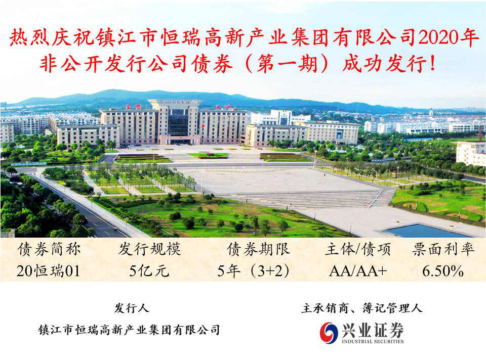 2020年10月9日,鎮(zhèn)江市恒瑞高新產(chǎn)業(yè)集團有限公司2020年度(第一期)非公開發(fā)行公司債于上海證券交易所簿記建檔發(fā)行成功。