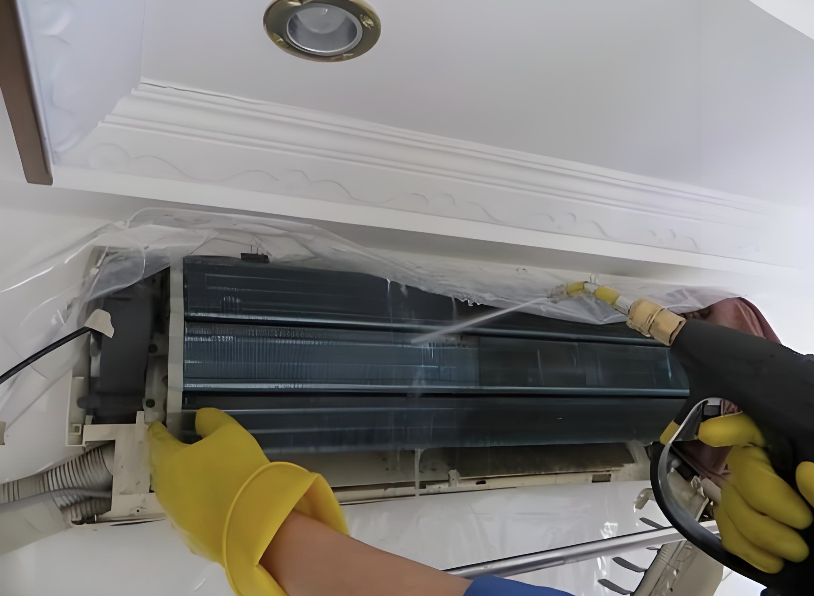 運(yùn)用清潔東西將空調(diào)的塵埃悉數(shù)的清掃一遍,防止后邊對(duì)空調(diào)清潔劑發(fā)作不良的影響,并將其垃圾處理好。