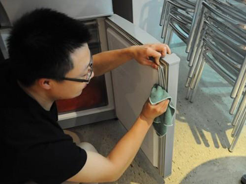 讓露出的冷卻旋管上的冰自然消融,冰消融一起,一邊用熱水制造的洗刷液清潔冰箱內(nèi)部、箱門內(nèi)面及箱門上的密封墊片,再用清水沖刷潔凈,待冰凍格內(nèi)的冰悉數(shù)消融,即可洗刷其內(nèi)壁,用清水沖刷潔凈,再擦干,再小心取出冰盤,清掉里頭的積水,洗凈擦干。